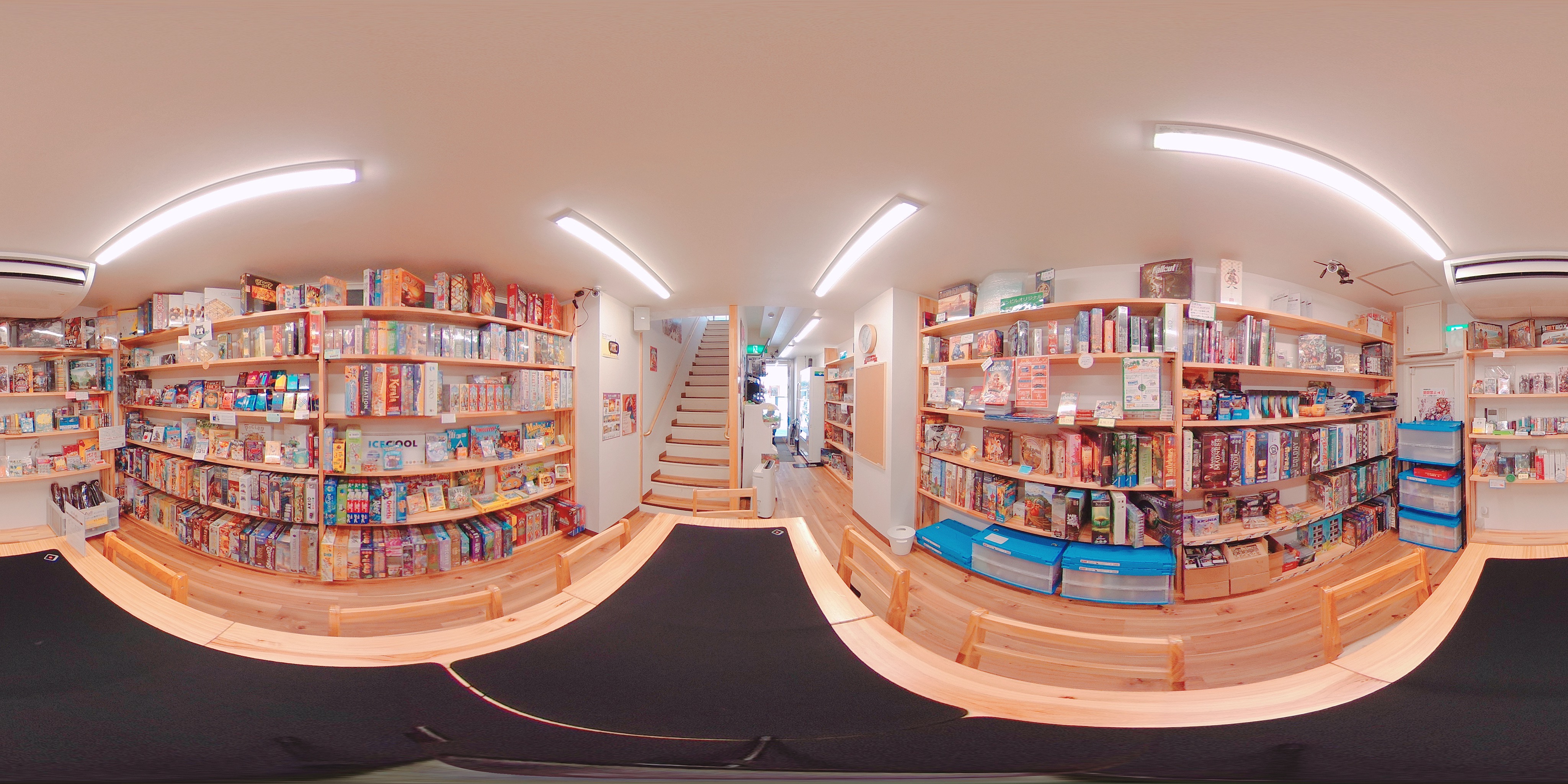 1階に入口があり、1階がボードゲームの販売ショップ、2階がプレイスペースとなっています。
